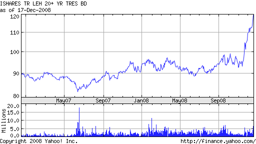 雖然在這種金融風暴下,投資人對信用風險跟通貨緊縮仍然非常擔憂,再加上預期聯準會(FED)還會降息,紛紛搶進信用等級最高的美國政府公債,以趨避風險,然FED已經沒有太多降息空間(只剩2碼就來到零利率),美政府公債價格已經來到高點,許多投資機構(銀行,投信跟投顧)卻還是鼓勵投資人買進美國政府公債基金以趨避股市下跌風險,此時才買進是非常危險的行為,可以參考這篇報導!